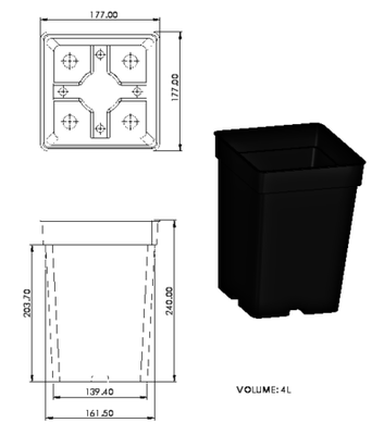 17.5x17.5cm square depth 24cm